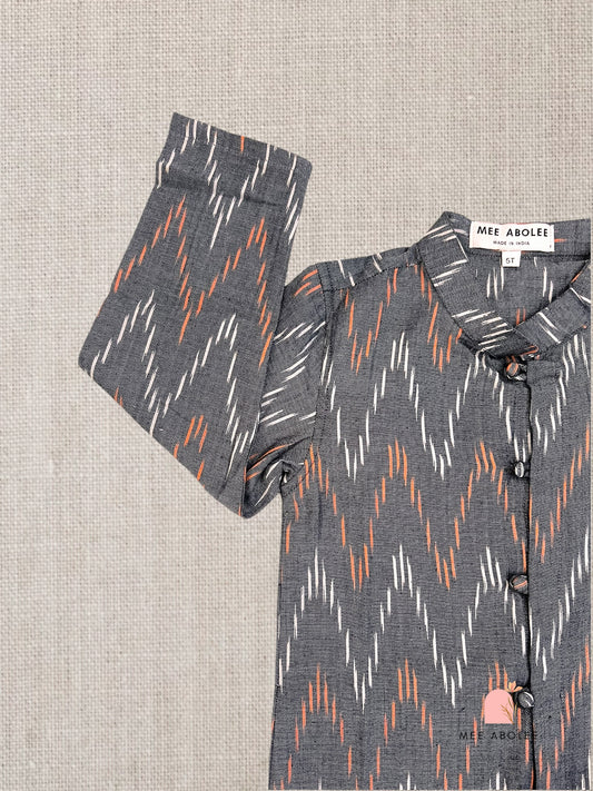 "Jai" Long Sleeves Kurta in Cloud Chevron