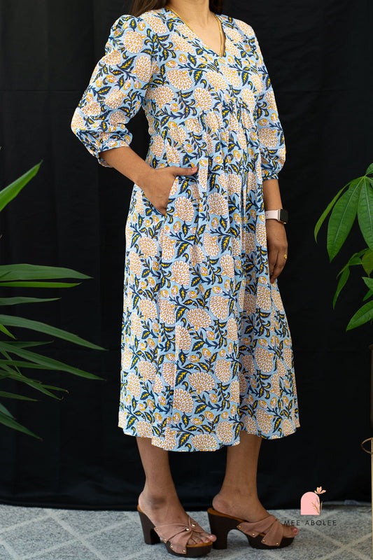 Kaaveri V-neck Midi Dress in Blue Mayflowers