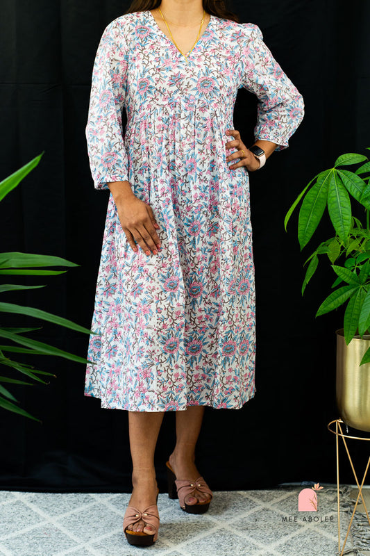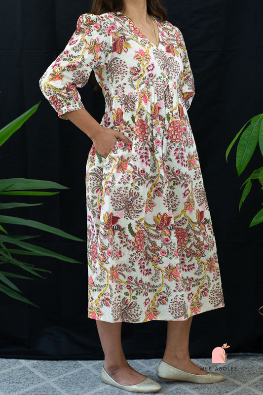 Kaaveri V-neck Midi Dress in Gardens of Jaipur
