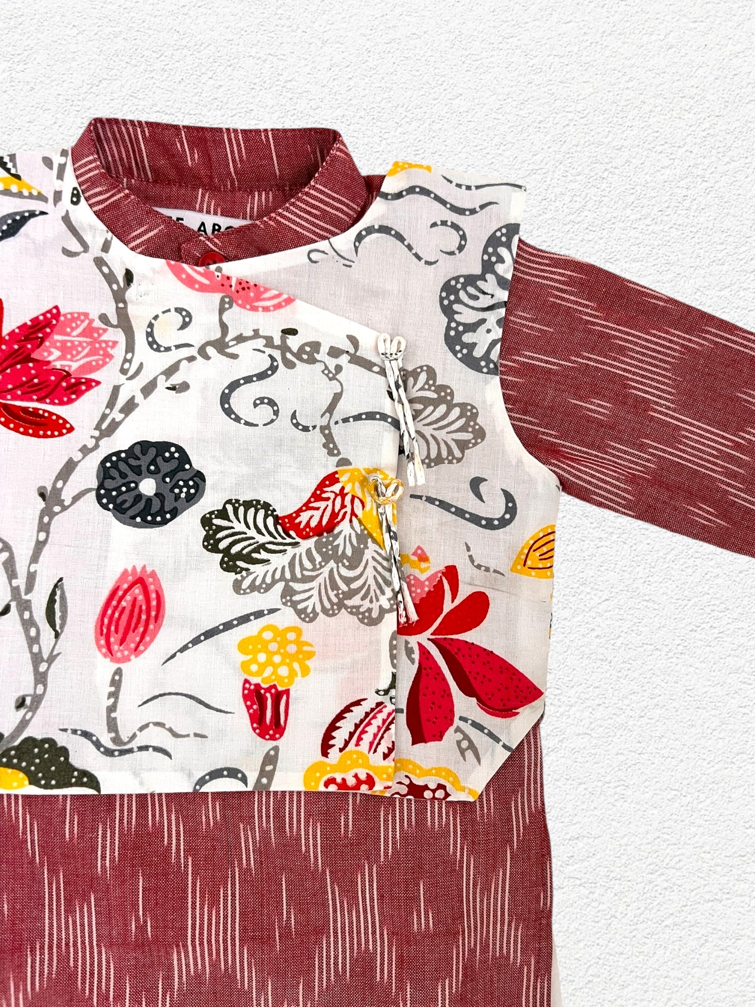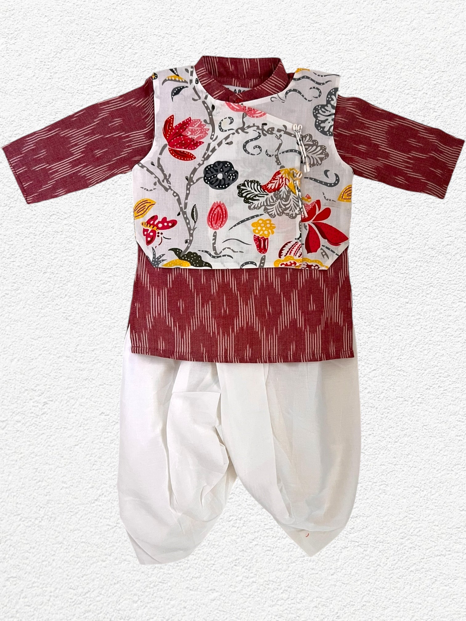 - Little Boys' Kurta and Dhoti set in 100% cotton fabric with a contrast jacket.
